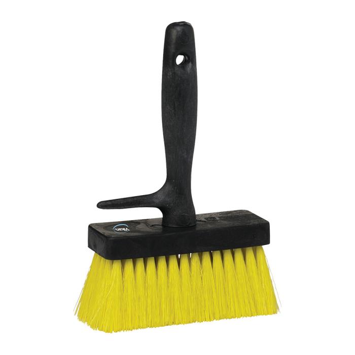 Mindre kalkbørste med håndtag og kantholder. Spaltede filamenter, der giver god bæreevne. Velegnet til kalkning, tapetklister og glitning af beton.