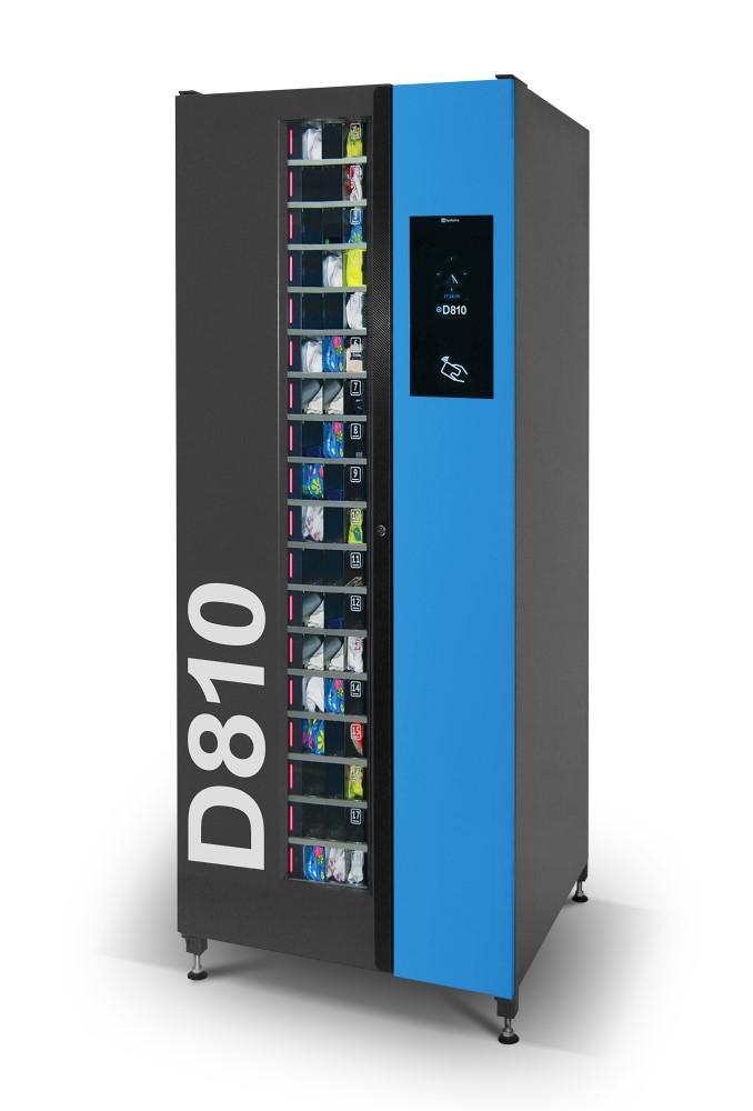 Automaten D810 afbilledet er meget fleksibel, når det kommer til, hvilket indhold den skal rumme. Du bestemmer selv antal rum og rums størrelse. Det hele styres på en stor karrusel.