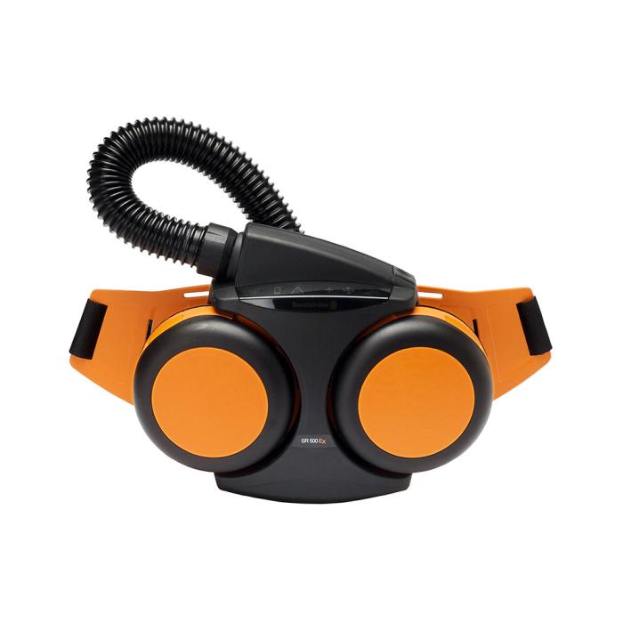 SR 500 EX er en batteridrevet motor, der er specielt designet til brug i miljøer, hvor der er eksplosiv fare. Risikovurdering: Før en udvælgelse af et EX-klassificeret produkt skal der foretages en risikovurdering / risikoanalyse. Det skal dokumenteres og skal udføres af en person med relevant uddannelse og viden til at foretage risikovurderinger af eksplosiv atmosfære. Den filtrerede luft ledes til ansigtsdelen via en luftluftslange. Det overtryk, der dannes, forhindrer forurenende stoffer i at komme ind i miljøet. Displayet har klare symboler til vigtig information. Den samme kontrol knap bruges til start, stop og driftstilstand (175 og 225 l/min). Udstyret med automatisk luftflows kontrol. Ved for lavt luftflow eller lav batterikapacitet vil der være akustisk og visuel alarm. Testet og godkendt i henhold til EN 12941:1998 og EN 12942:1998